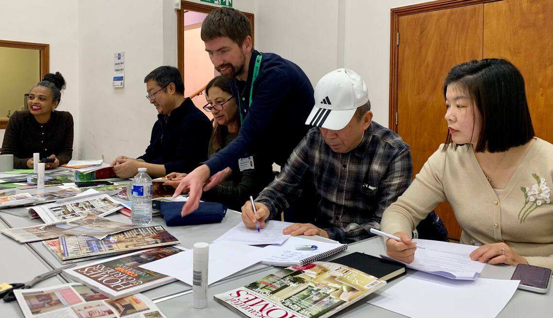 They delivered a hands-on workshop about the experiences of our learners moving from one home to another in a new country. The learners made collages with written commentaries to express their histories of emigration and immigration through illustrated descriptions of homes.